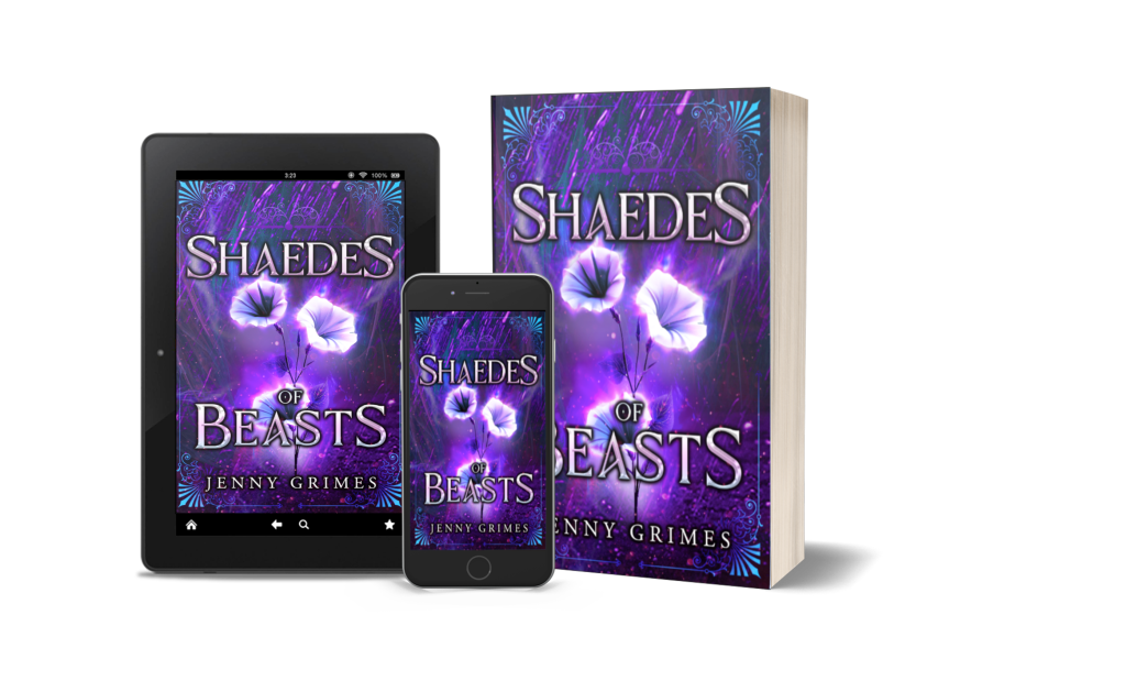 Jenny Grimes writes fantasy romance novels that focus on the blurred lines between worlds, the darkness you’ll find in all of them, and the love that resides there too. She creates her characters and spins her stories from her home in the human realm, where she raises her three little book dragons with her husband, and spends a healthy amount of time reading, travelling, and creating art.